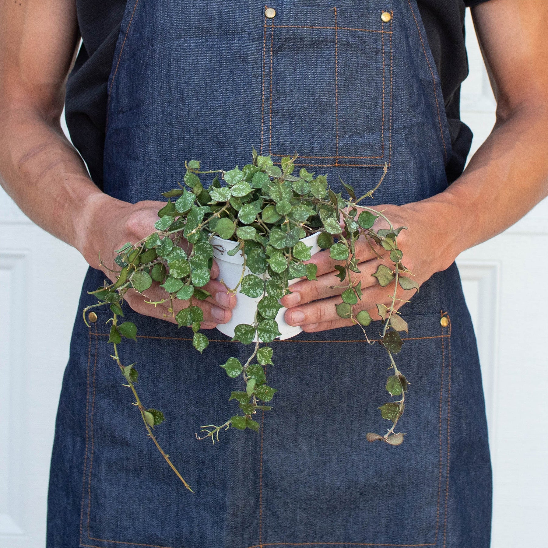 - Description: Hoya curtisii is a miniature trailing hoya. This form of curtisii has small round olive green leaves mottled with grey. The apex is pointed on the thick succulent leaves. This will make a tight mat over the soil surface and then hang down.