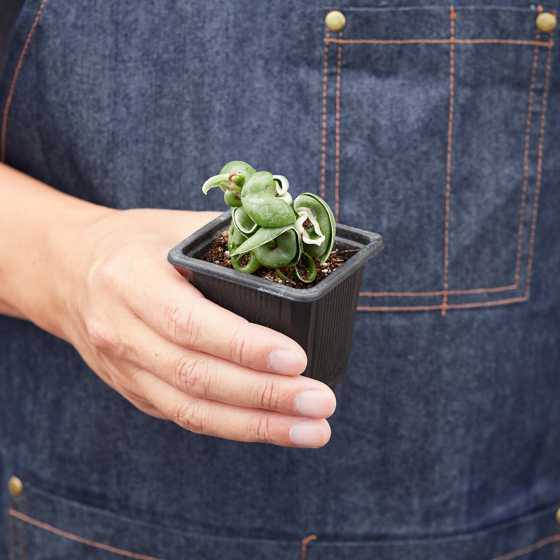 - Description: Unique Hindu rope plants, Hoya carnosa compacta, are draping succulent vines that produce clusters of star-shaped waxy flowers. The thick, twisted, curly, cupped leaves of a Hindu rope plant are why it’s often called Krinkle Kurl. Hindu rope plants can be found in solid green or with variegated leaves. This type of hoya plant is very easy to care for as long as you have plenty of light and are careful with your water.