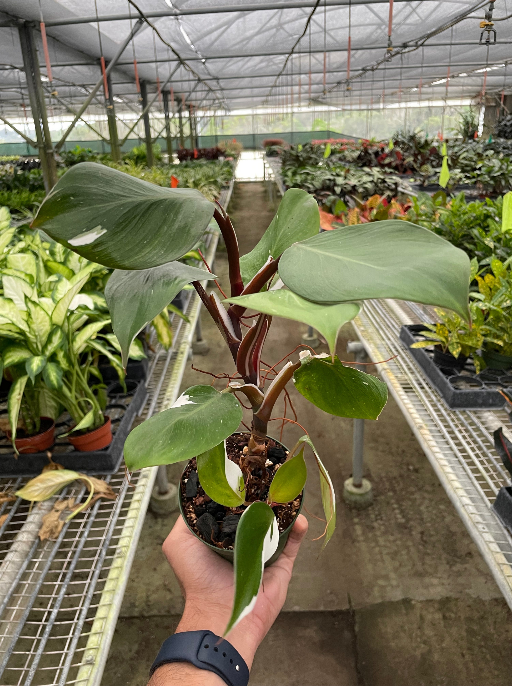 - Botanical Name: Philodendron erubescens 'White Knight'