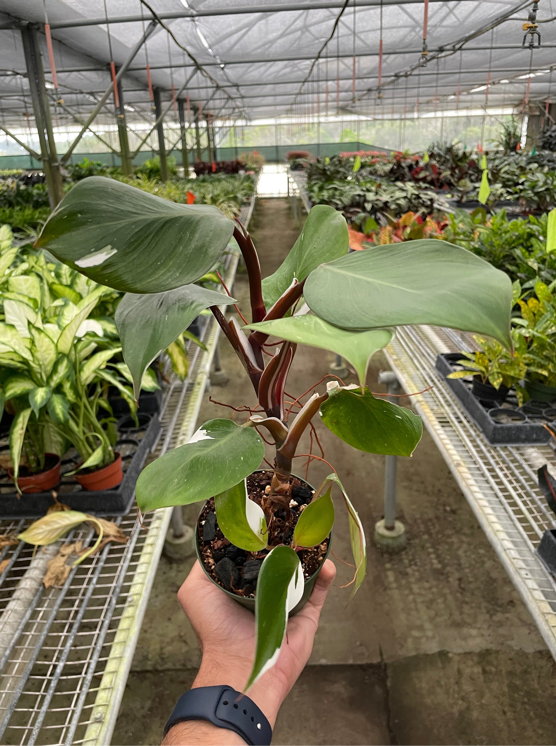 - Description: Philodendron erubescens 'White Knight' is an absolutely stunning and rare aroid. These usually have 2-5 inch leaves that have albo variegation! This is a highly sought-after Philodendron. This Philodendron grows well in low to moderate light. This Philodendron is a moderate growing species and takes some patience.